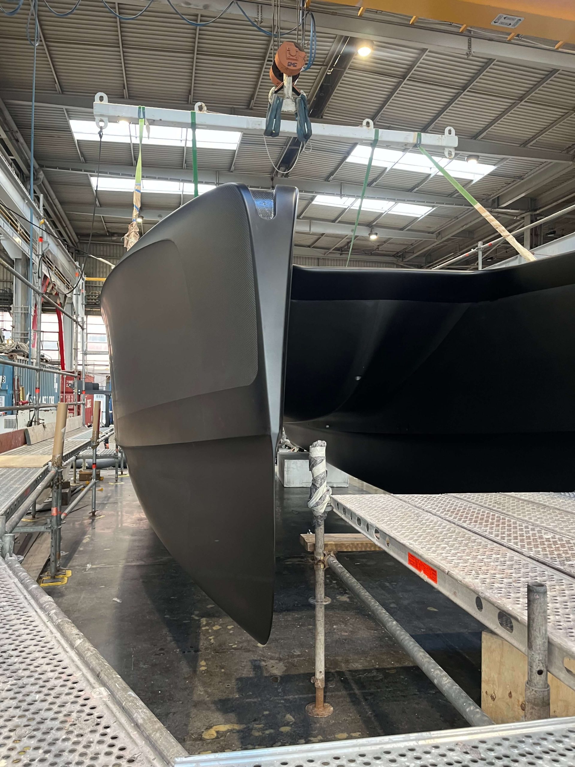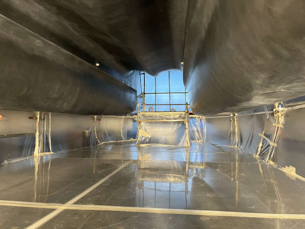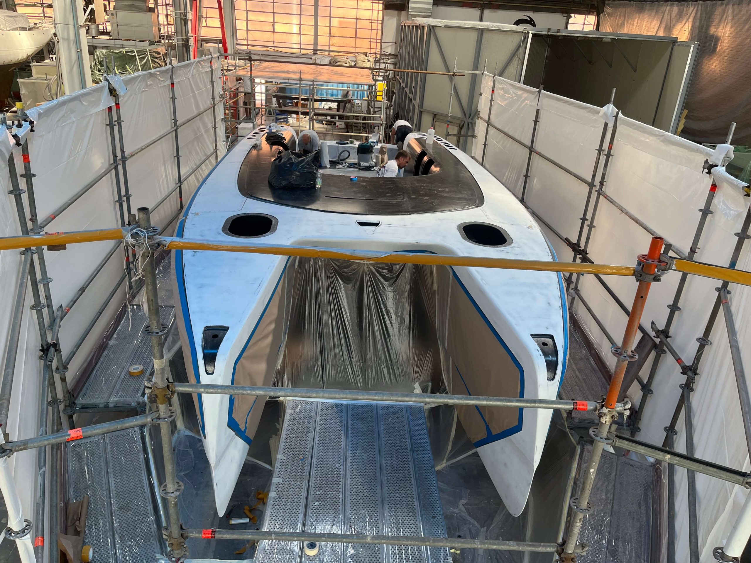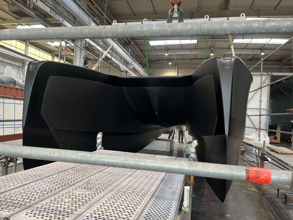 An innovative and high-tech BlueGame design created at SANGIORGIO MARINE shipyards for the 2024 edition of the America’s Cup. Support boat for the American Magic team was first built with carbonlook and matte black finishes to take part in the Monte Carlo and Genoa boat shows in fall 2023.