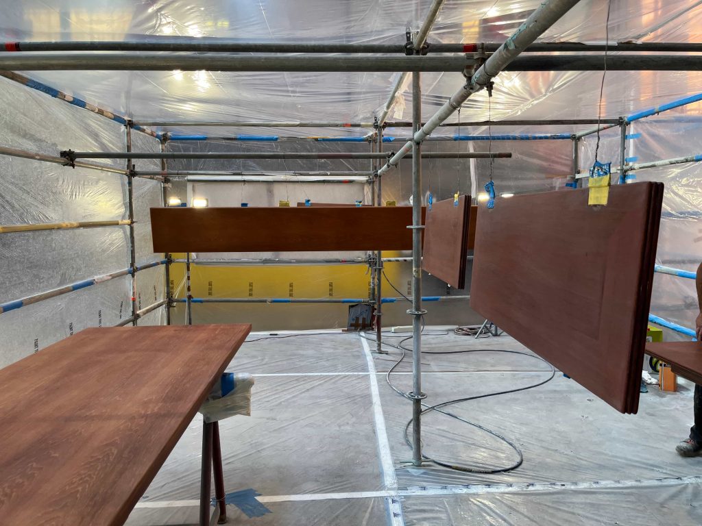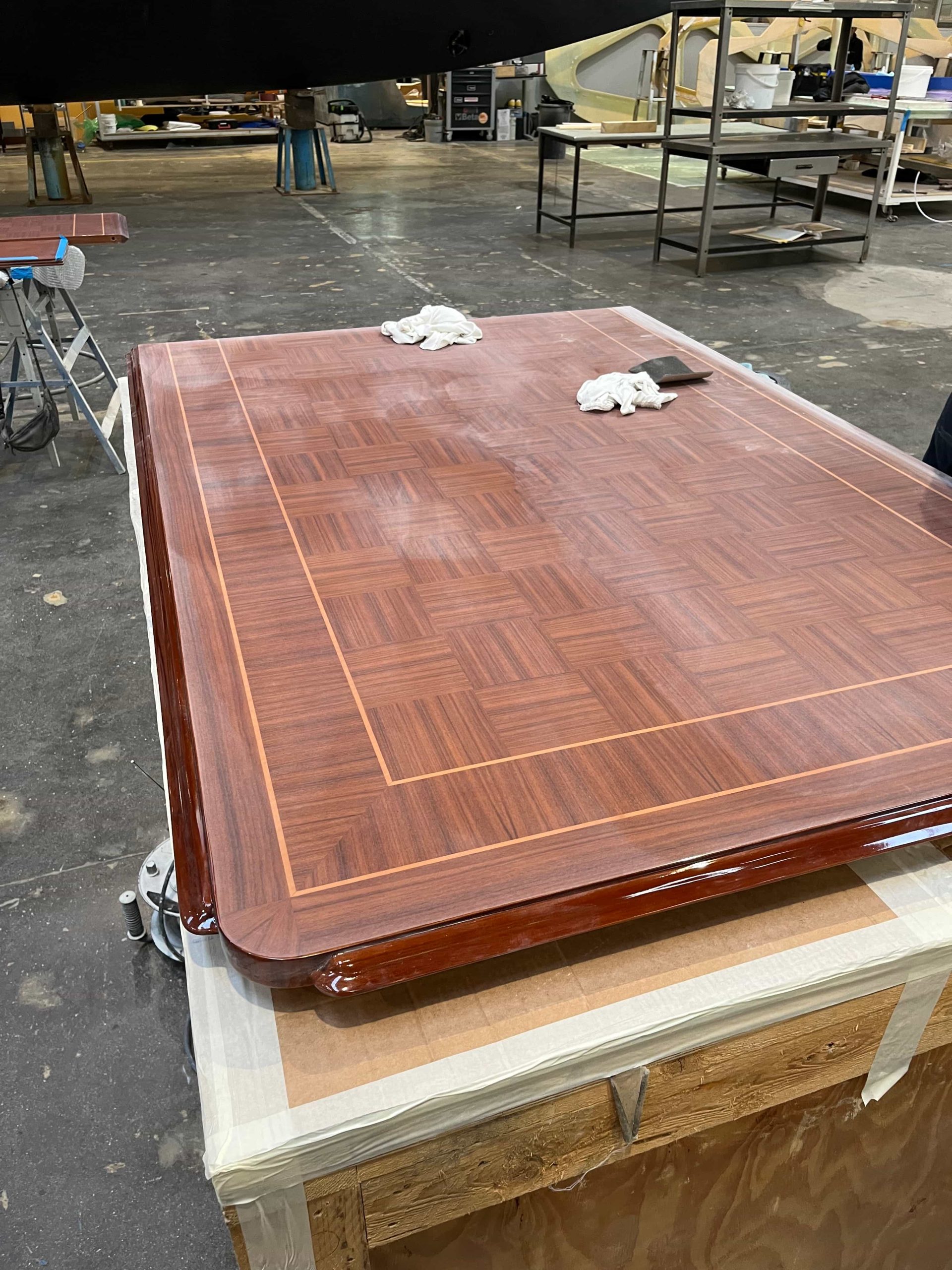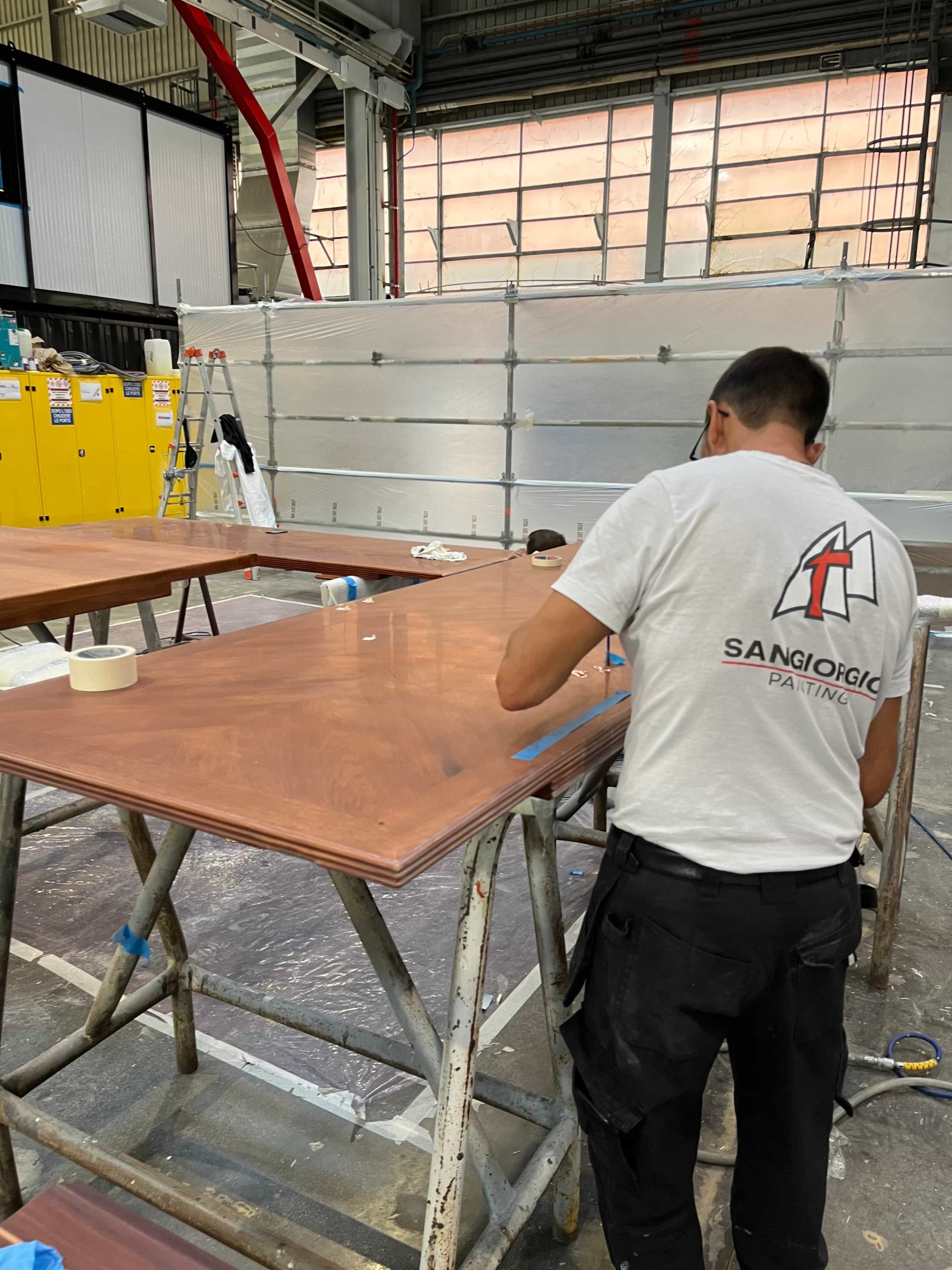 For this luxury yacht, built at the Mondo Marine shipyards, we were commissioned to handle the complete refinishing of all external and internal tables, which required restoration. After stripping them down to the bare wood and performing necessary restoration interventions, we proceeded with the painting and subsequent polishing, ensuring an aesthetically flawless result.